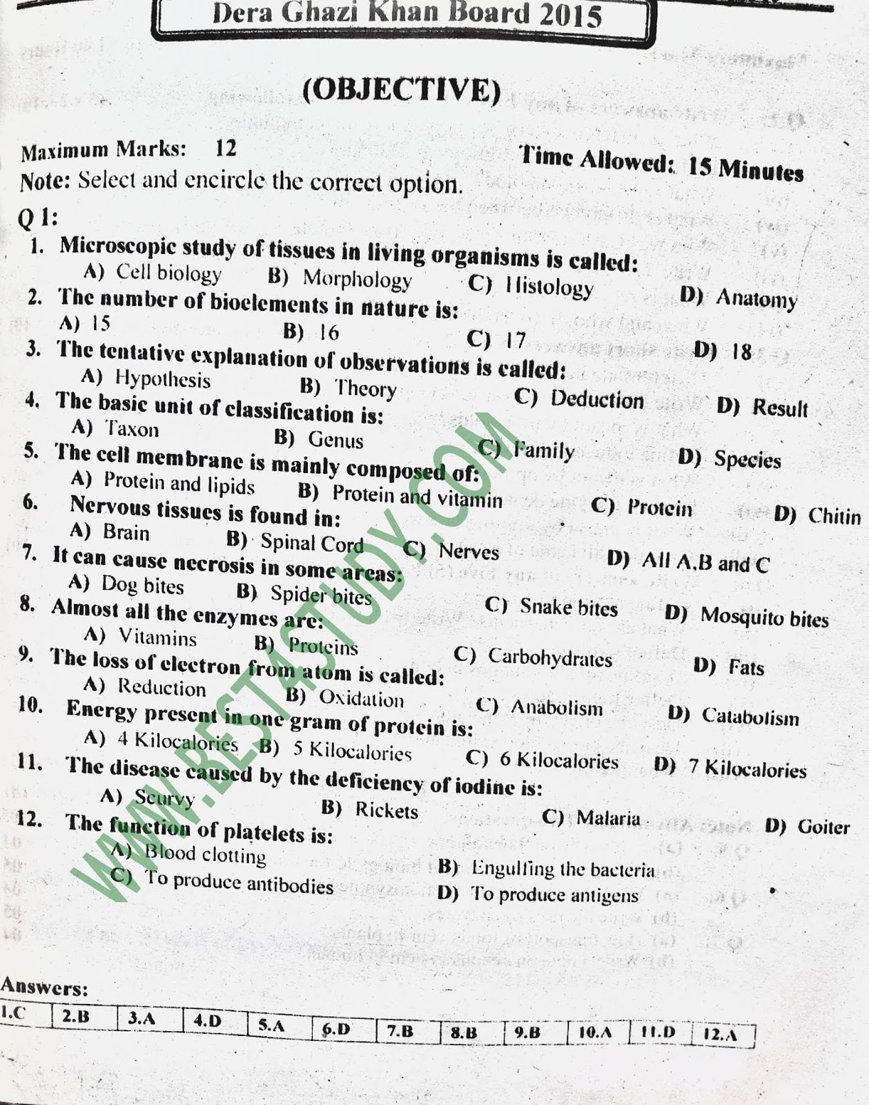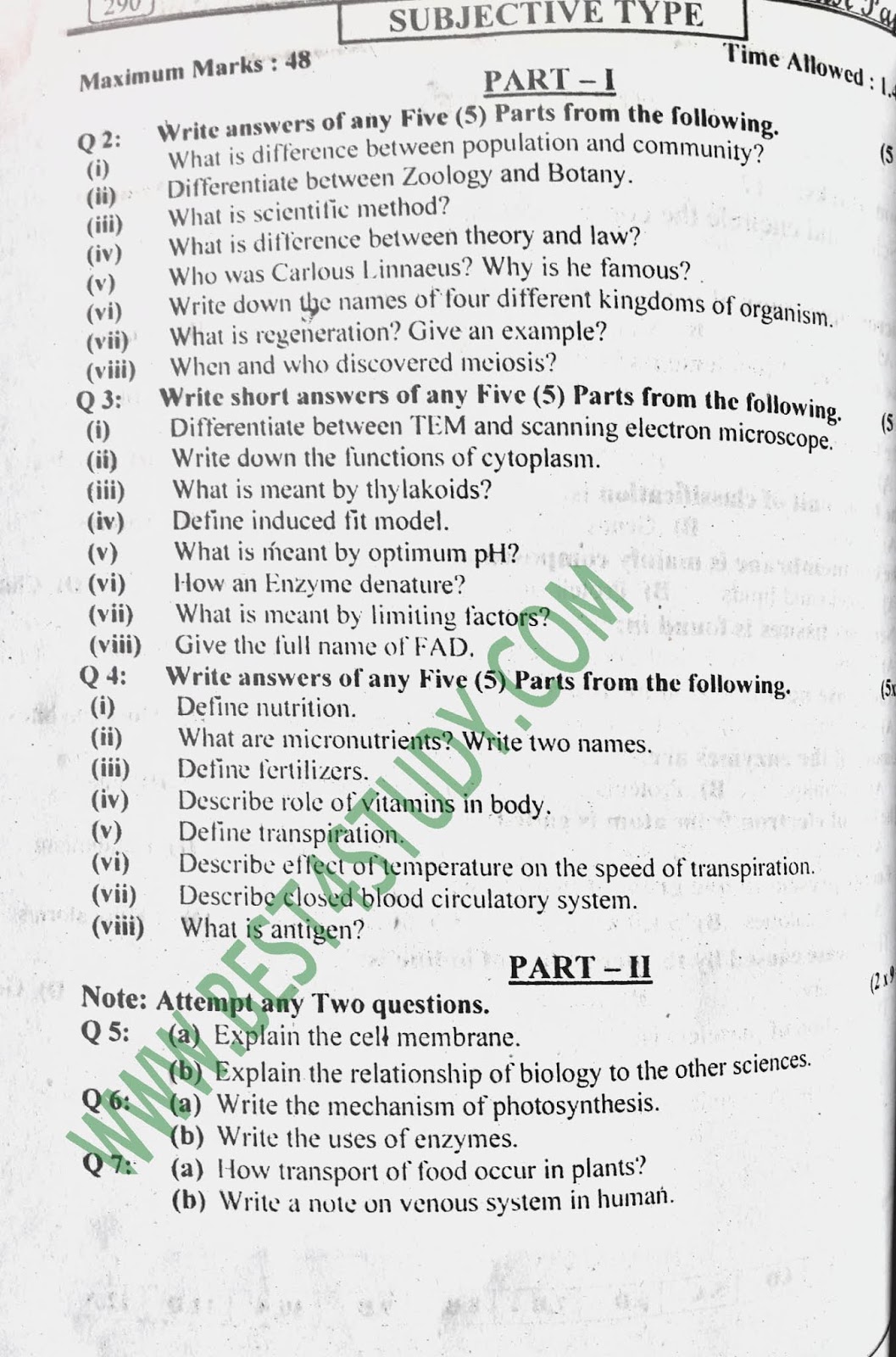 9th Biology Past Papers 2017
