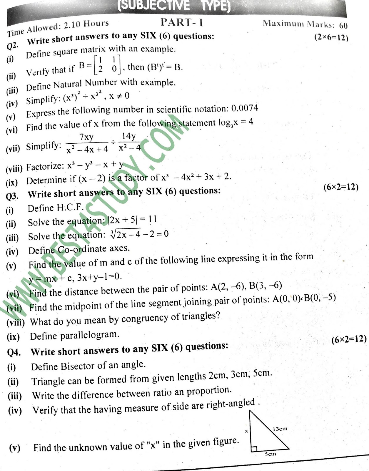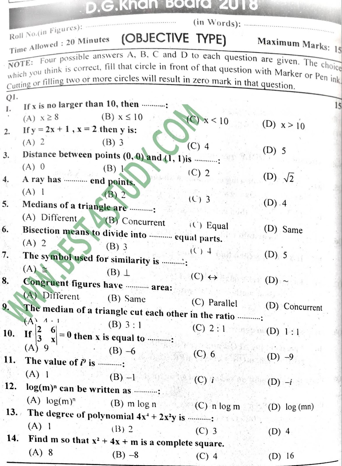 9th Mathematics Past Papers 2018