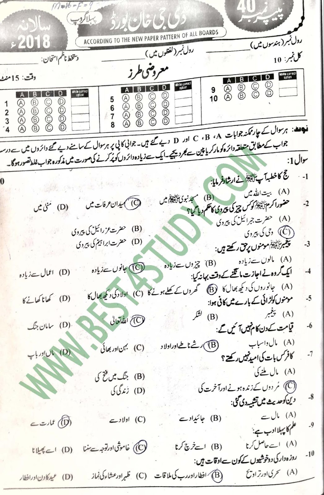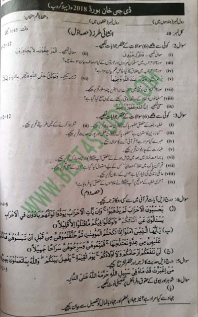 10th Islamiyat Past Papers 2018
