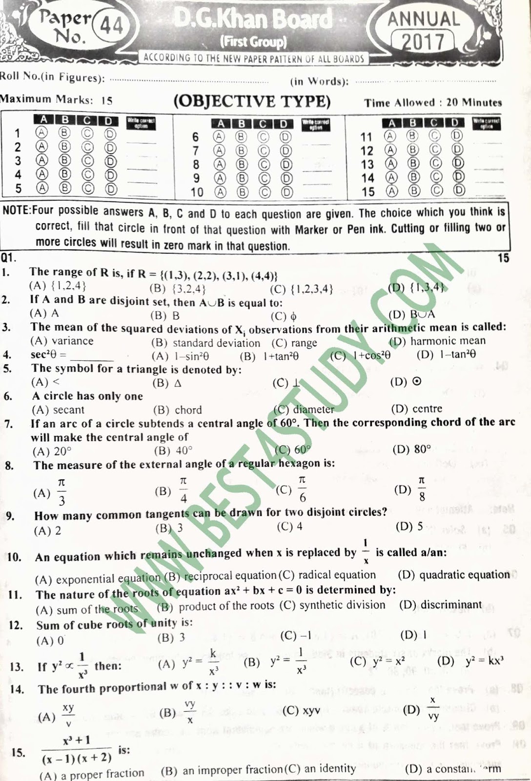 ⇒15) D.G Khan Board (First time )