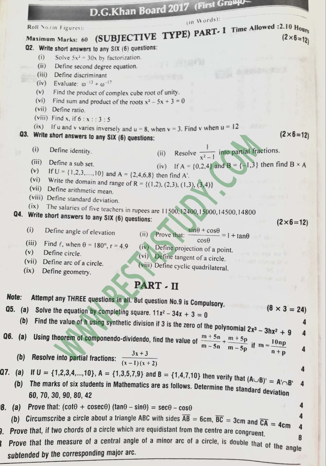 ⇒12) Sargodh Board ( Second time )