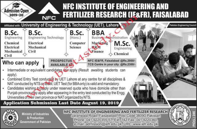 NFC Institute of Engineering and Fertilizer Reserch (IE&FR) Faislabad Admission