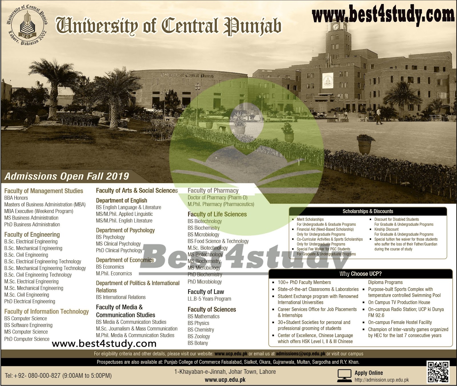 •For Ph.D. Minimum qualification of MS/ M.Sc.(Hons)/ M.Phil. degree (18-years of education) with at least CGPA 3.0 (out of 4) or equivalent.•Candidates with degree in the fields of Biotechnology, Bioinformatics, Botany, MBBS, Biology, Chemistry, Biochemistry, Zoology, Genetics, Environmental Sciences, Biological Sciences, Agriculture (All majors/specializations), Animal Sciences (All majors/specializations), Food Technology (Nutrition, Food Sciences), Microbiology, Physiology, Pharmacy, Microbiology & Molecular Genetics.•Preferably first class academic career, however, one second division is allowed except in the final degree.•HEC scholarship holders will be given preference.•In-service candidates may apply through proper channel.•Subject GRE/GAT-Subject test is mandatory for Ph.D. admission, as per HEC requirements.•Ph.D. candidates can apply at any time after qualifying subject GRE/GAT-Subject test.•Result awaited students can also apply with ‘Hope Certificate’ from their department/ University.